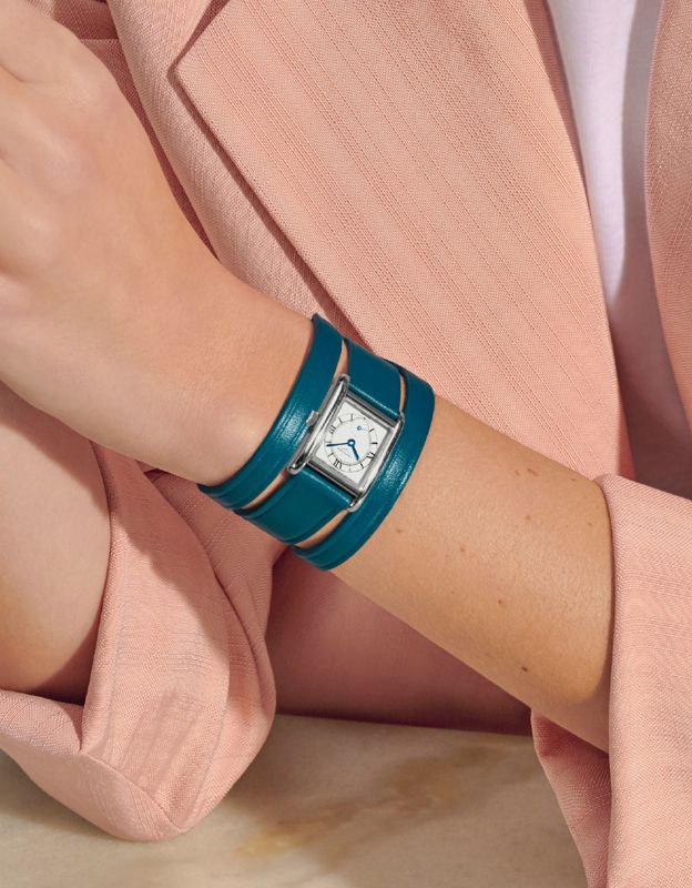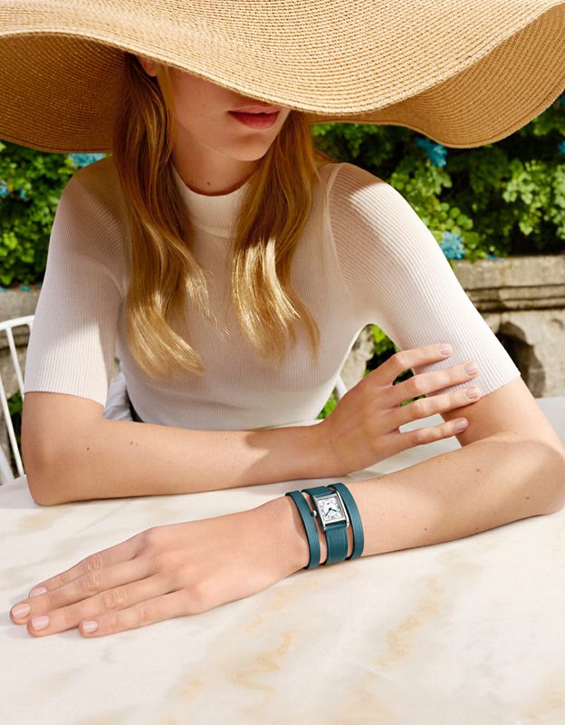 Zegarek z niebieską tarczą dobrze wygląda na tle opalonej skóry; w stylizacjach komponuje się z bielą i pastelami. Idealny do bluzki w kwiaty, białych szortów czy zwiewnej sukienki.