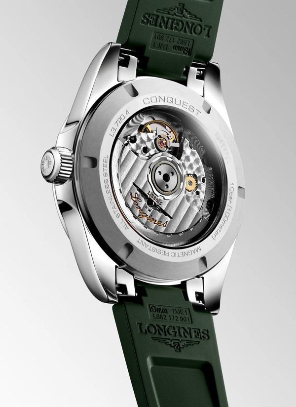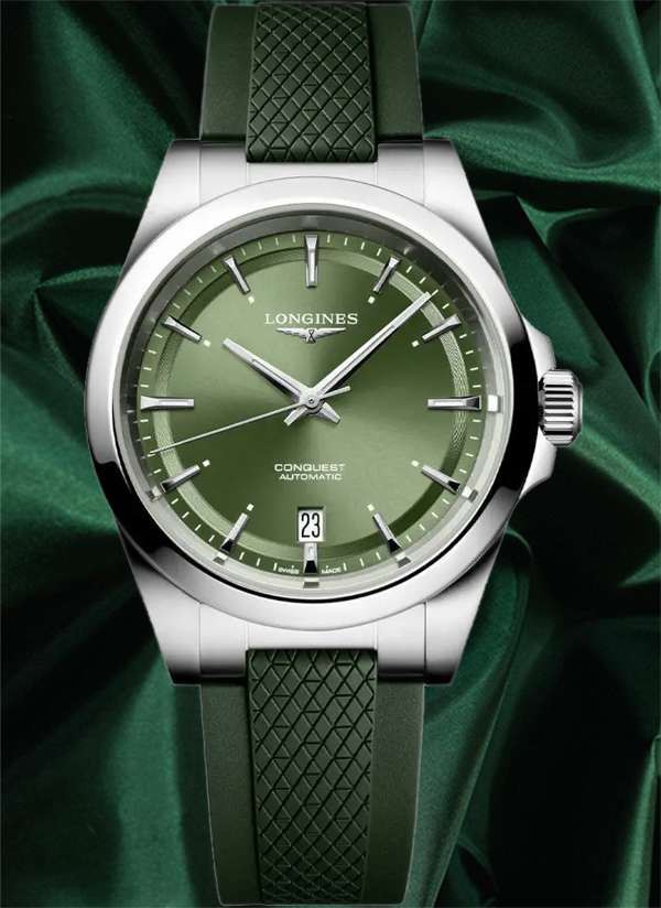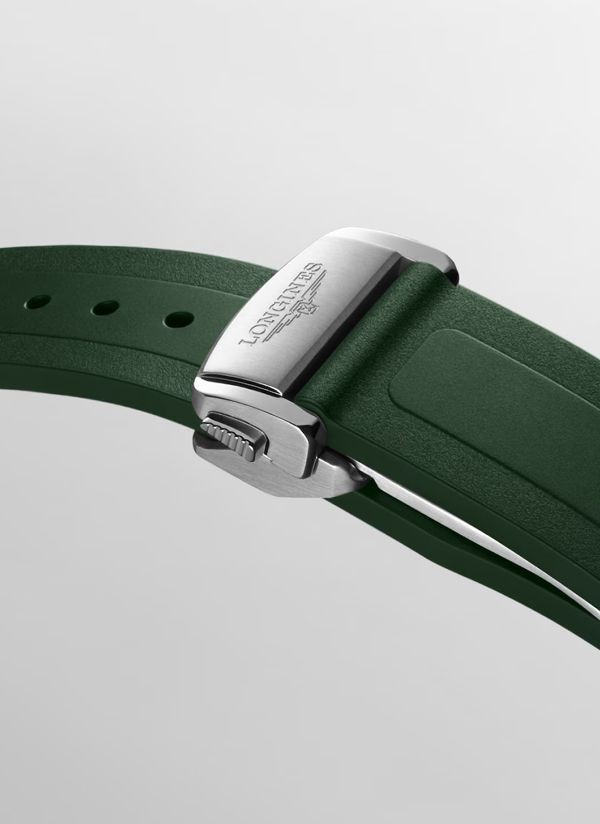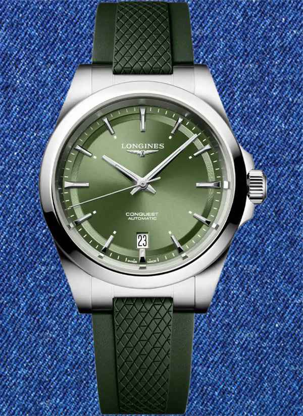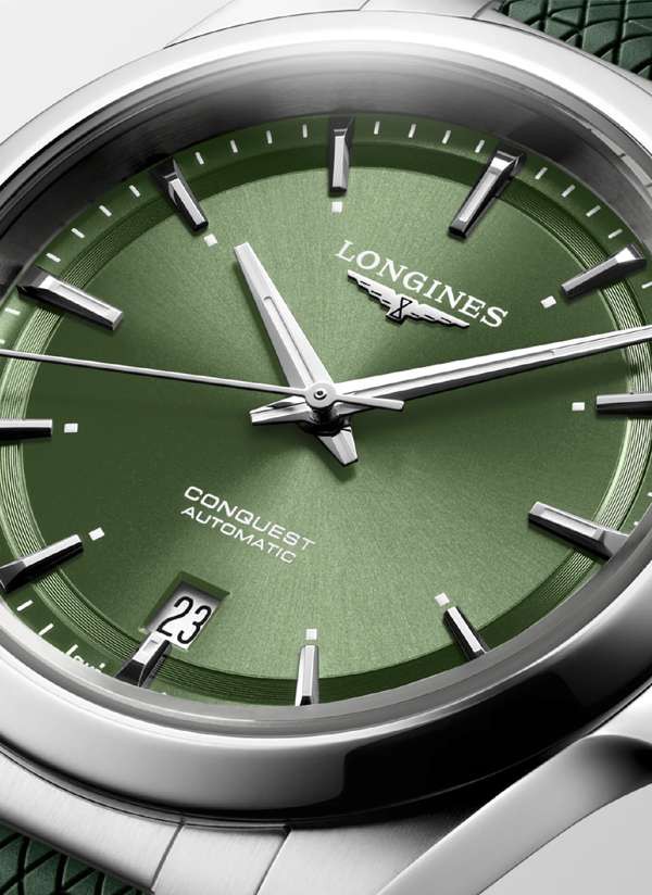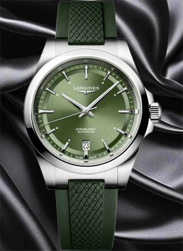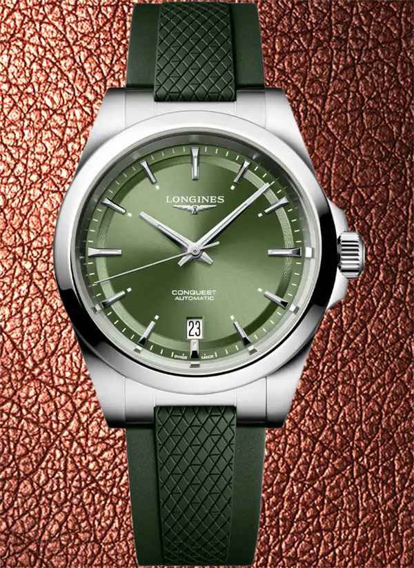 Zegarek Longines Conquest L3.720.4.02.9 zachwyca swoją elegancją, oferując delikatną zieloną tarczę, która nadaje mu wyjątkowy charakter. Zielony kauczukowy pasek dodaje temu modelowi wytrzymałości i nowoczesności, tworząc doskonały balans między stylem, a funkcjonalnością.