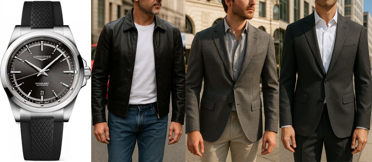 Model Longines Conquest L3.830.4.52.9 to przykład sportowej elegancji, która pasuje zarówno do stylizacji sportowych sensu stricto, ubrań noszonych na co dzień, jak i strojów biznesowych. Zegarek zatem można łączyć ze strojami nieformalnymi jak T-shirt i skórzana kurtka oraz lniana koszula i jeansy. Równie dobrze sprawdzi się z marynarką i chinosami a nawet grafitowym garniturem podczas oficjalnych spotkań.