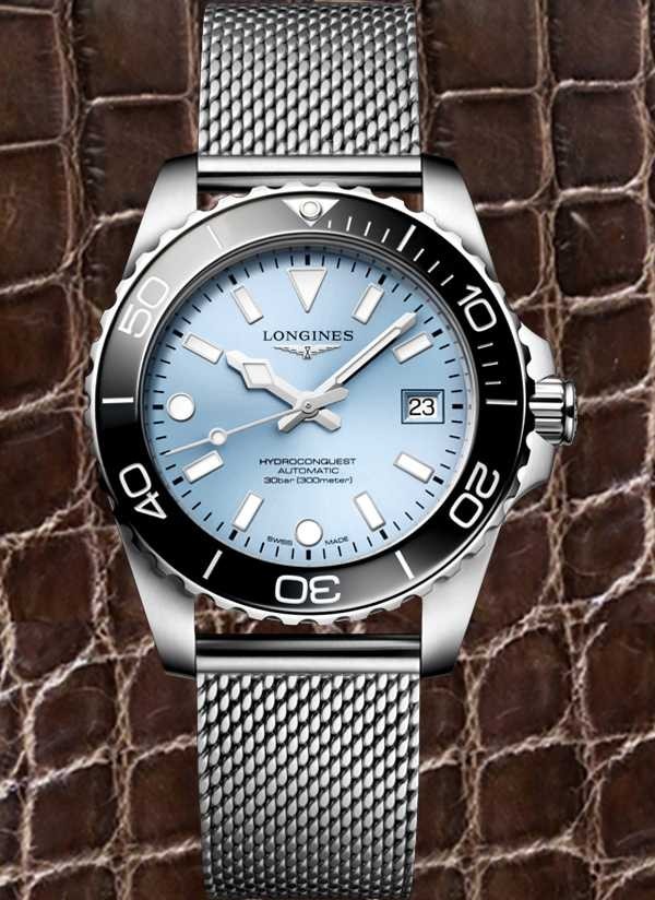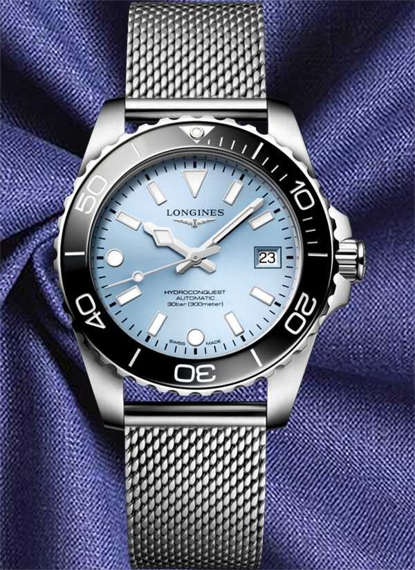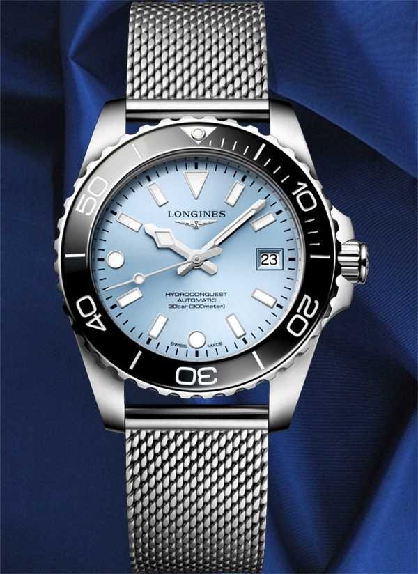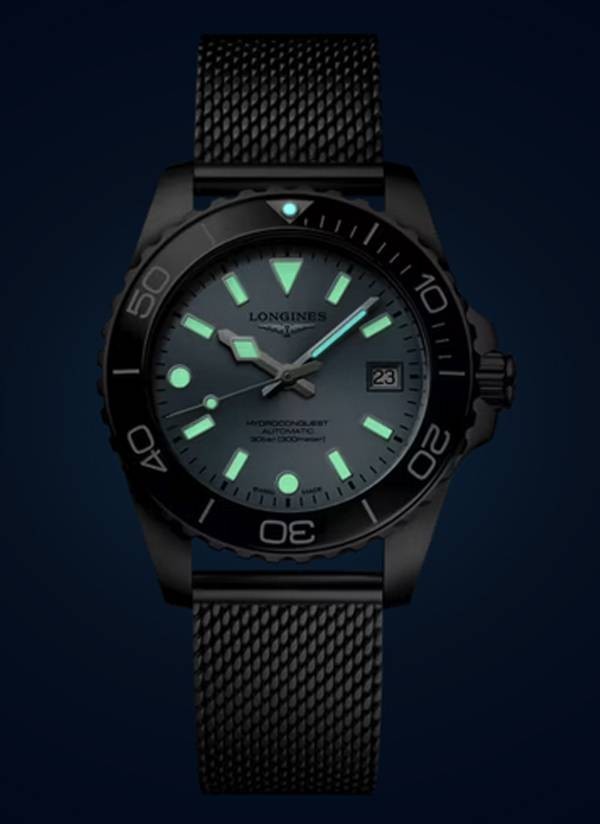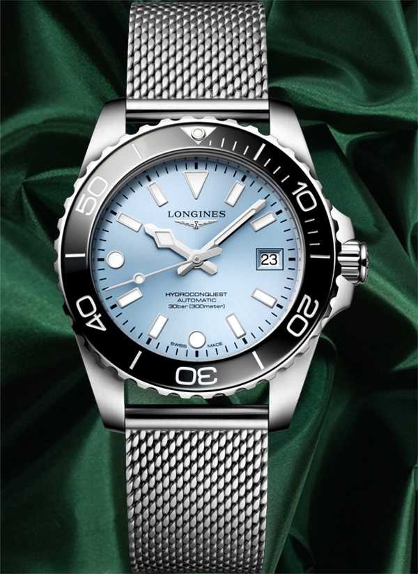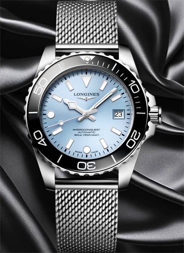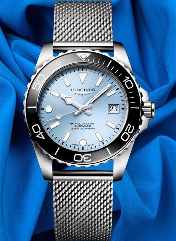 Kolekcja HYDROCONQUEST łączy w sobie nowoczesną estetykę ze sprawdzoną wydajnością. Napędzany ekskluzywnym automatycznym mechanizmem LONGINES, wodoszczelny do 30 barów (300 m), z bezelem obracającym się w jednym kierunku, zakręcaną koronką i zakręcanym deklem.