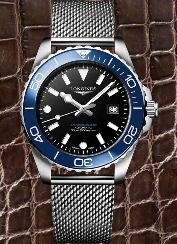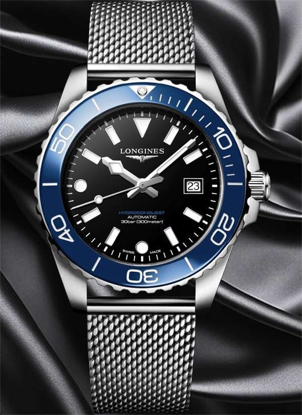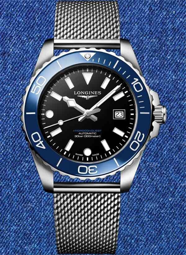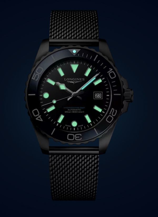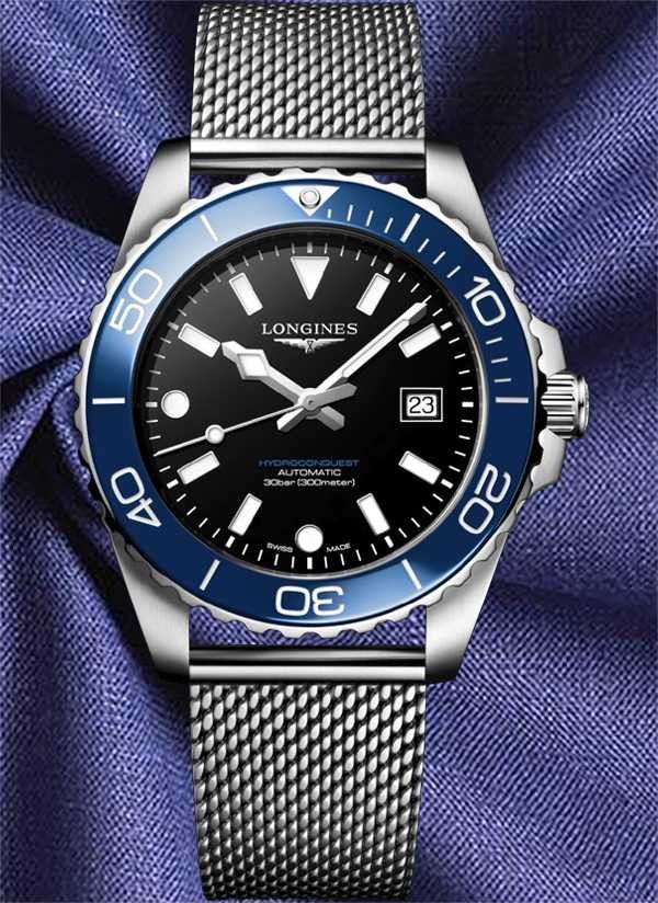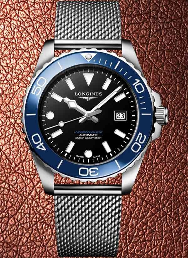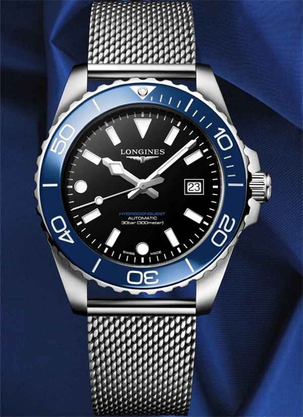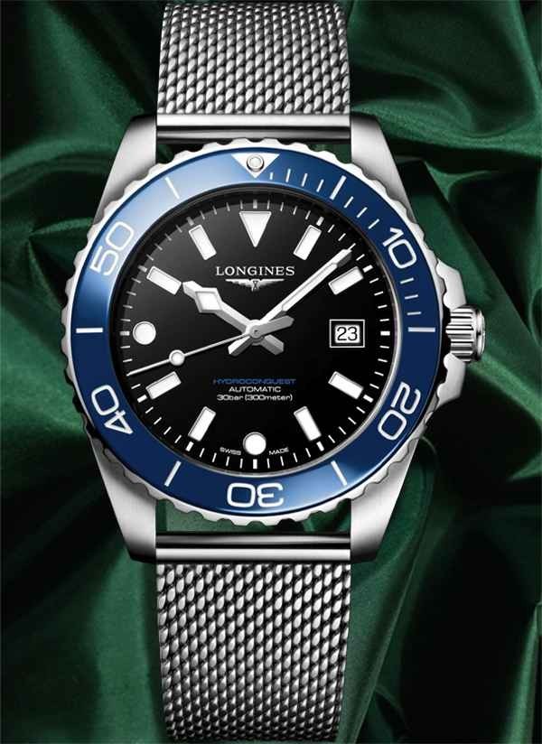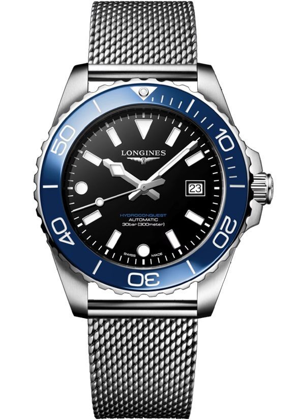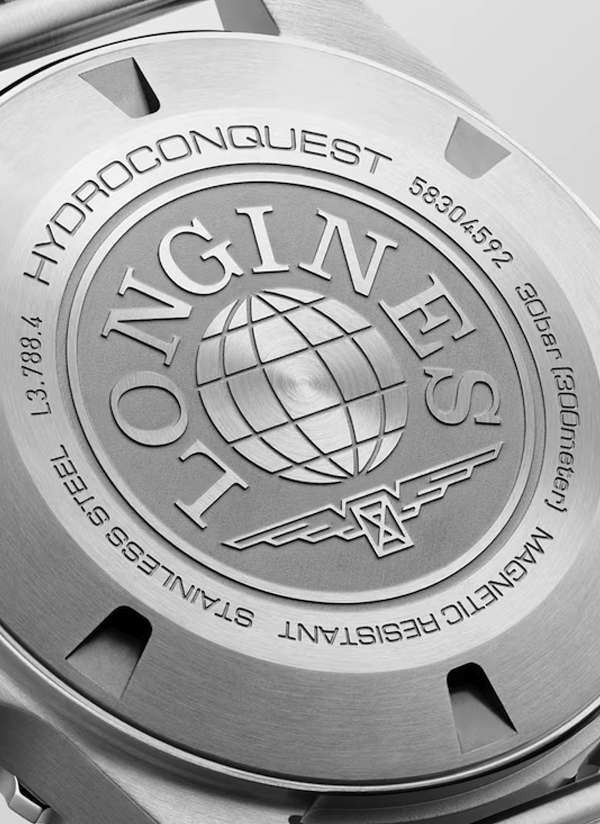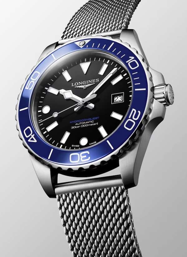 Kolekcja HYDROCONQUEST łączy w sobie nowoczesną estetykę ze sprawdzoną wydajnością. Napędzany ekskluzywnym automatycznym mechanizmem LONGINES, wodoszczelny do 30 barów (300 m), z bezelem obracającym się w jednym kierunku, zakręcaną koronką i zakręcanym deklem.