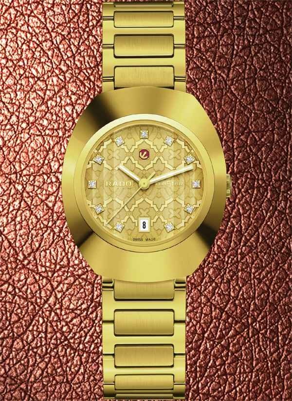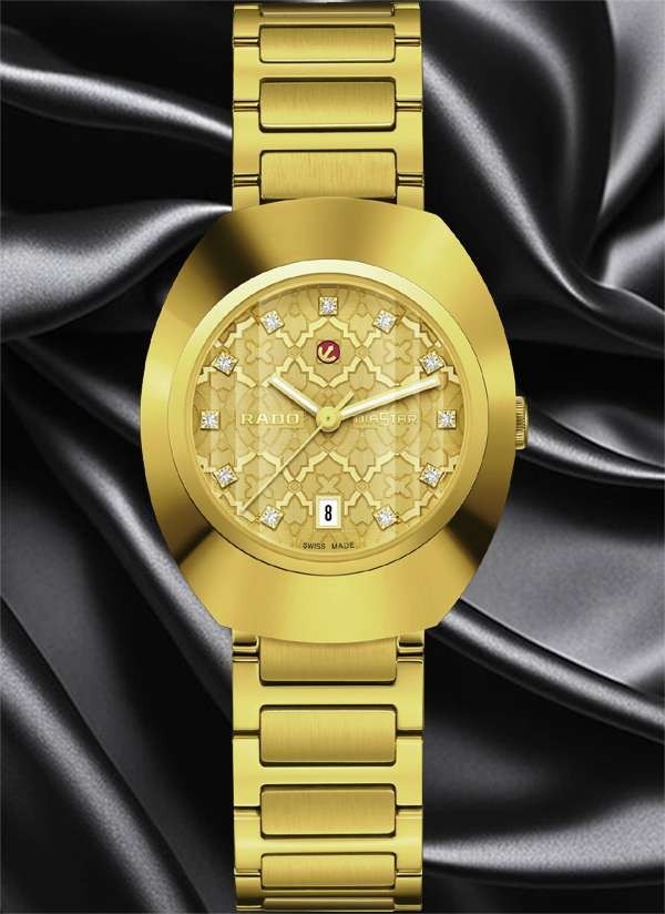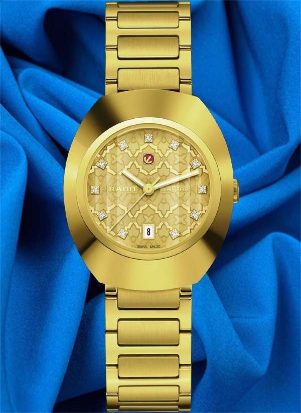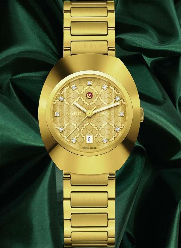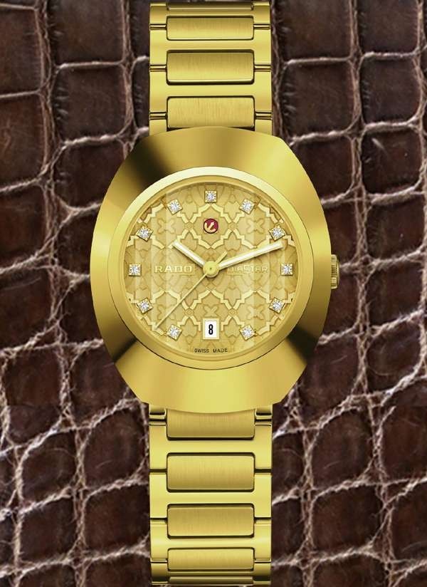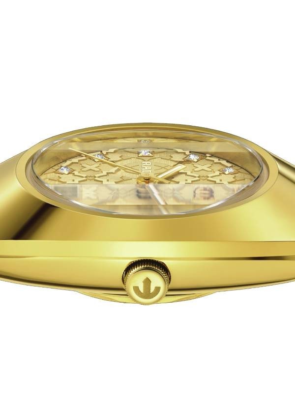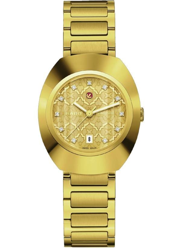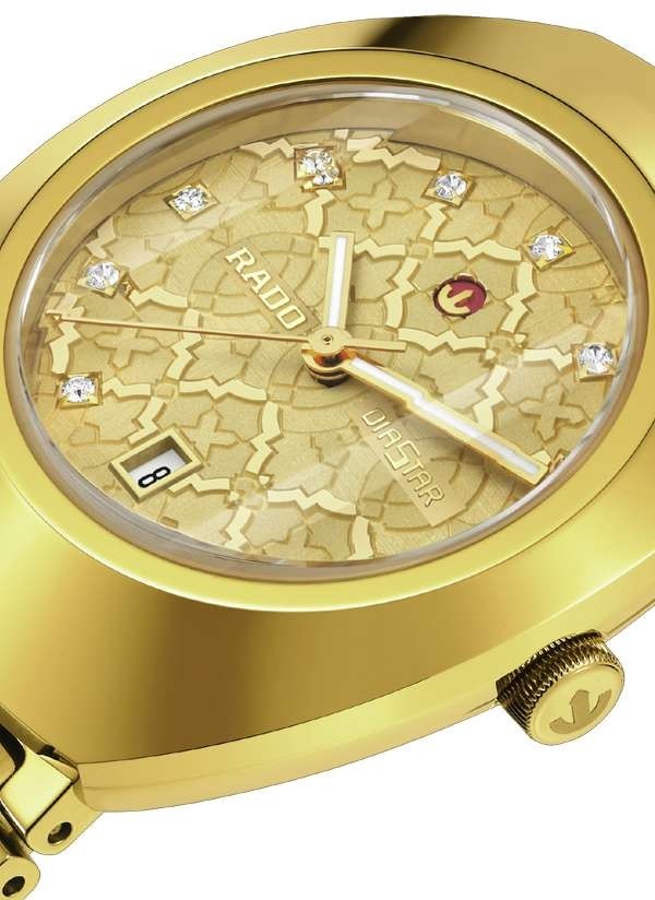 Model Rado DiaStar Original jest prawdziwie kultowym zegarkiem marki Rado. Wersja 30 mm posiada pierścień lunety Ceramos™ z powłoką PVD z żółtego złota i fasetowane szkło szafirowe z powłoką antyrefleksyjną i stanowi nowoczesną interpretację "zegarka na całe życie" marki Rado. Zegarek jest napędzany przez automatyczny kaliber Rado R586, z datownikiem, 48-godzinną rezerwą chodu i antymagnetyczną sprężyną włosową Nivachron™. Testowany i regulowany w pięciu położeniach, przewyższa standardowe wymagania testowe, gwarantując niezawodność i dokładność. Tarcza charakteryzuje się mozaikowym wzorem, w którym poszczególne kształty mają rozmaite wykończenia i są rozmieszczone na różnych poziomach, tworząc wielowarstwowy efekt nadający tarczy głębię i intrygujący wygląd. Dopełnieniem całości jest jedenaście przezroczystych kryształów. Klasyczny styl Rado.