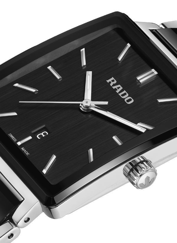Twój styl mówi sam za siebie — to niekończąca się opowieść o wyrafinowaniu. Odkryj doskonały komfort i ponadczasową elegancję z Rado Integral. Charakterystyczna kwadratowa koperta ze stali szlachetnej kryje wygięte szkło szafirowe z powłoką antyrefleksyjną i czarną metalizacją, które podkreślają przestronny cyferblat. Pokryte rodem indeksy godzinowe z białą masą Super-LumiNova® harmonizują z czarnym, pionowo szczotkowanym wykończeniem oraz srebrnym logo Rado. Rodowane wskazówki godzinowa i minutowa z białą masą SuperLumiNova®, a także rodowana wskazówka sekundowa gwarantują czytelność o każdej porze. Pod luksusową powierzchnią kryje się precyzyjny mechanizm kwarcowy Rado R218. Nowa odsłona modelu Integral została wyposażona w delikatnie zwężającą się bransoletę — ze stali szlachetnej z ogniwami środkowymi z ceramiki high-tech — idealnie współgrającą z eleganckimi proporcjami kultowej kwadratowej koperty. Ostatni detal, wygięte szkło dopasowane do kształtu nadgarstka, jest niezaprzeczalnym dowodem Twojego poczucia ponadczasowego stylu. Smukły, elegancki i pełen klasy — zegarek Rado Integral to wybór na całe życie.