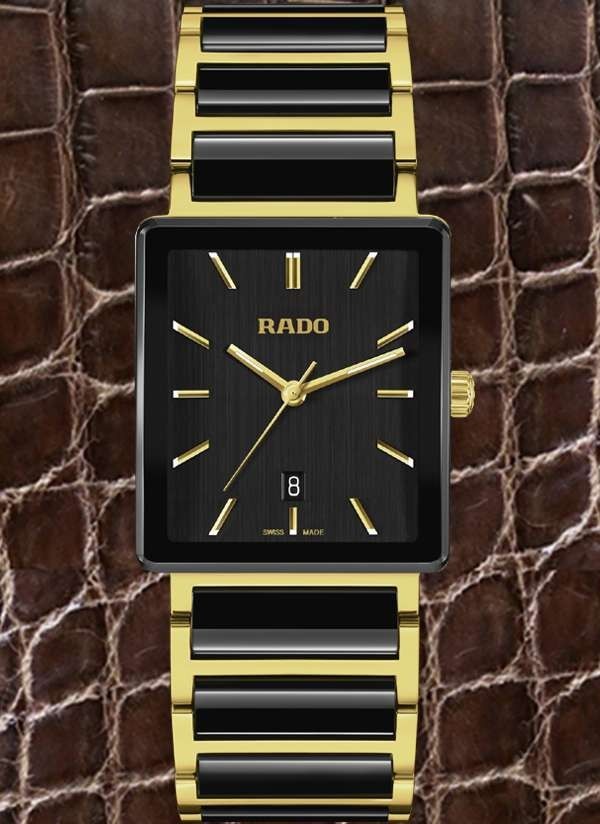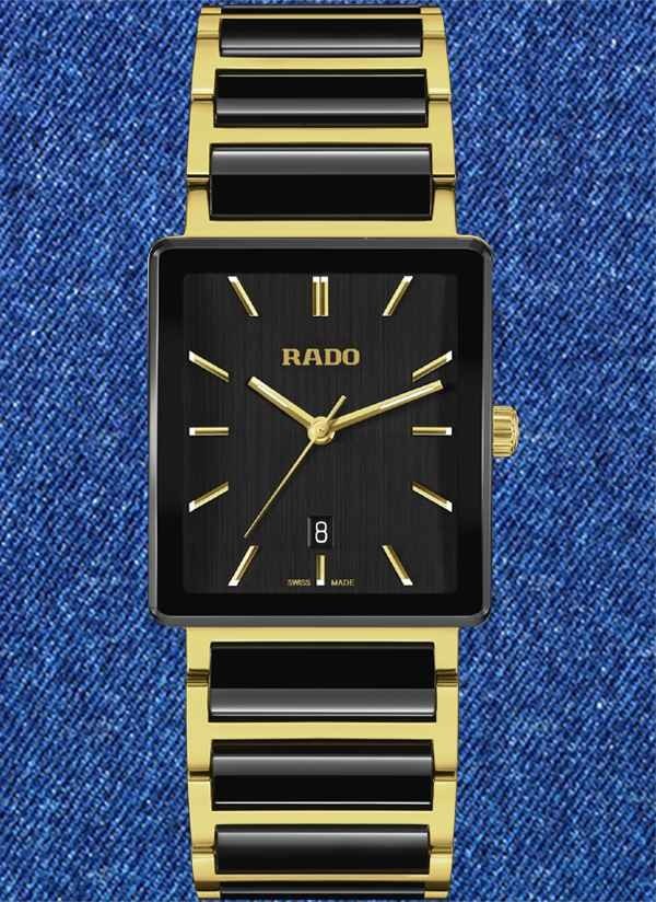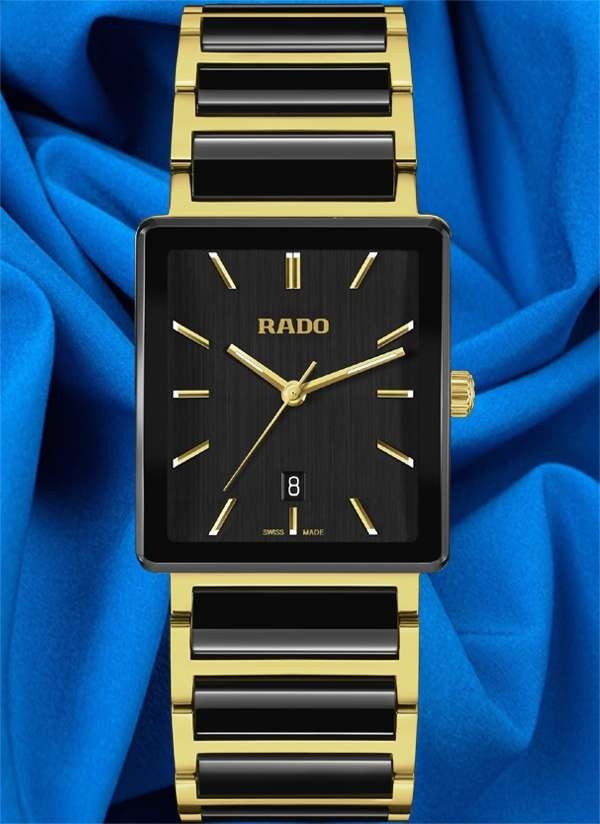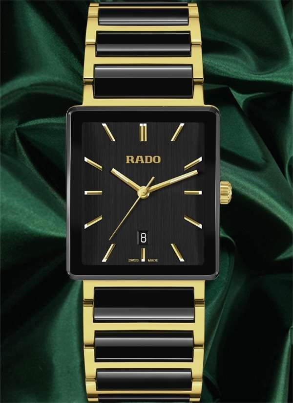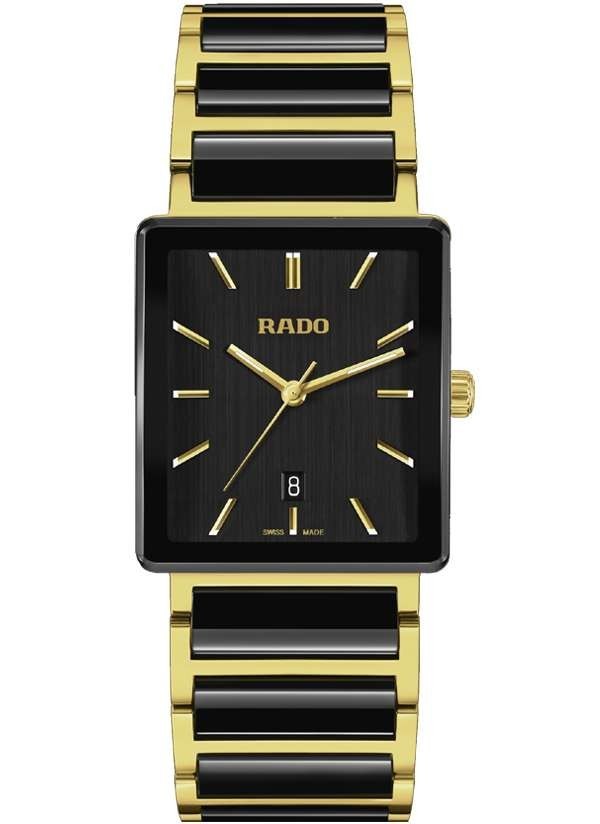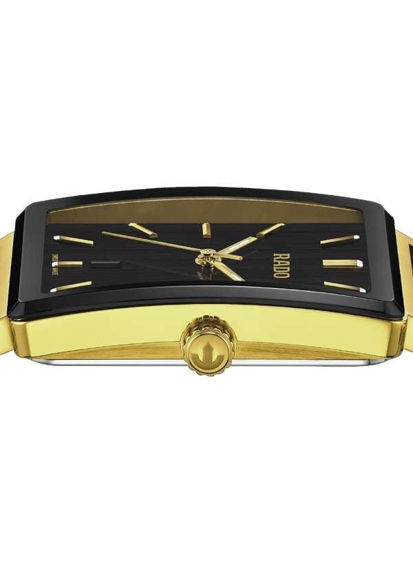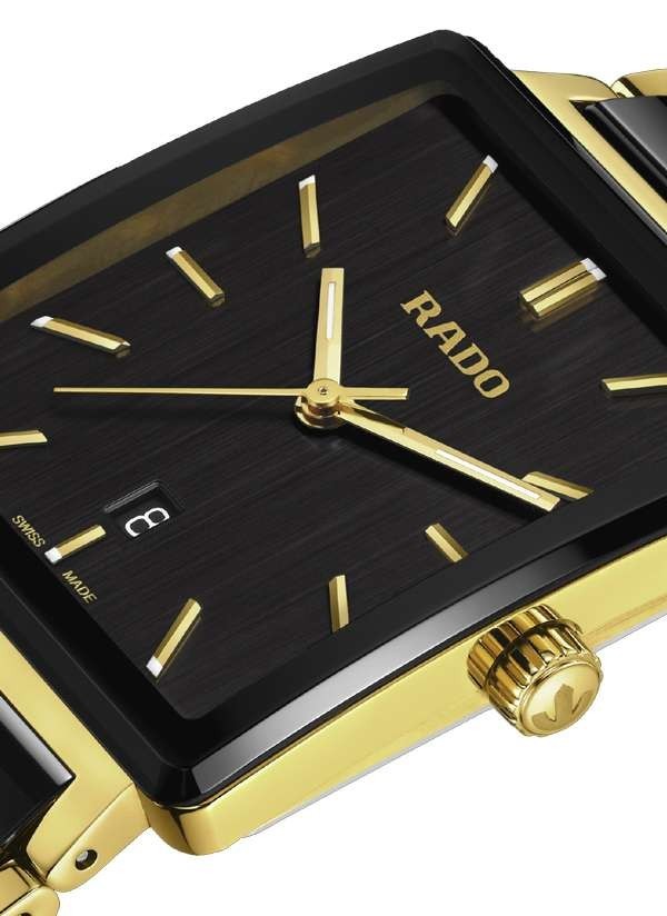 Twój styl mówi sam za siebie — to niekończąca się opowieść o wyrafinowaniu. Odkryj doskonały komfort i ponadczasową elegancję z Rado Integral. Charakterystyczna kwadratowa koperta ze stali szlachetnej jest zwieńczona zakrzywionym szkłem szafirowym z powłoką antyrefleksyjną i czarną metalizacją, podkreślając dobrze widoczny cyferblat. Indeksy w kolorze żółtego złota z białą powłoką Super-LumiNova® harmonizują z czarnym, pionowo szczotkowanym wykończeniem oraz logo Rado w kolorze żółtego złota. Wskazówki godzinowa i minutowa w kolorze żółtego złota z białą powłoką SuperLumiNova®, a także wskazówka sekundowa w tym samym kolorze gwarantują czytelność o każdej porze. Pod luksusową powierzchnią kryje się precyzyjny mechanizm kwarcowy Rado R218. Nowa odsłona modelu Integral została wyposażona w delikatnie zwężającą się bransoletę — ze stali szlachetnej z polerowanymi ogniwami z powłoką PVD w kolorze żółtego złota i polerowanymi czarnymi ogniwami z ceramiki high-tech — idealnie współgrającą z eleganckimi proporcjami kultowej kwadratowej koperty. Ostatni detal, zakrzywione szkło odzwierciedlające kształt nadgarstka, jest niezaprzeczalnym dowodem Twojego poczucia ponadczasowego stylu. Smukły, elegancki i pełen klasy — zegarek Rado Integral to wybór na całe życie.