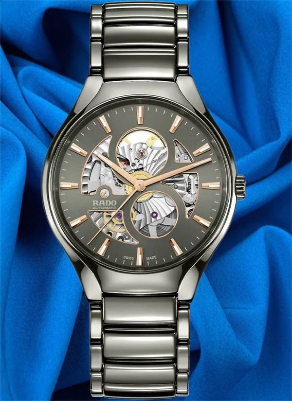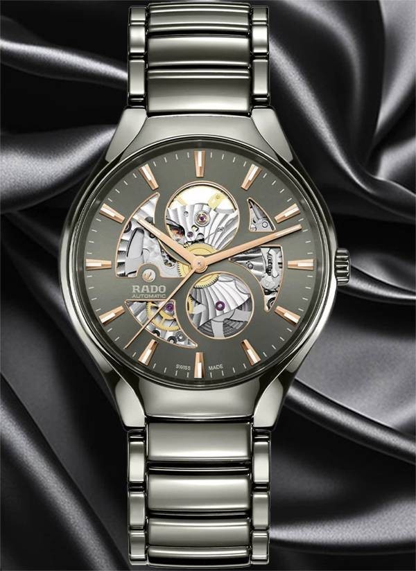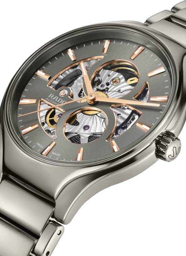 Poznaj idealne połączenie doskonałego designu z mistrzostwem w dziedzinie materiałów - Rado True Round Open Heart. Ten niezwykły zegarek charakteryzuje się urzekającą konstrukcją z przyciągającym wzrok mechanizmem i pozwala podziwiać skomplikowane ruchy automatycznego kalibru Rado R734 będącego urzeczywistnieniem sztuki zegarmistrzowskiej. Wyposażony w antymagnetyczną sprężynę włosową Nivachron™, zapewnia 80 godzin rezerwy chodu. Zegarek posiada kopertę typu monobloc z polerowanej ceramiki plazmowej high-tech i koronkę oraz tytanowy dekiel, którego szafirowe szkło ukazuje przyciągający wzrok mechanizm. Szara tarcza ze szlifem słonecznym ma fazowane krawędzie w kolorze różowego złota oraz szary nadrukowany znacznik minut. Model ten ma odpowiednio dobraną, szara bransoletę wykonaną z polerowanej ceramiki plazmowej high-tech, wyposażoną w trzyczęściowe tytanowe zapięcie. Zegarek jest wodoodporny do głębokości 50 m. Model Rado True Round Open Heart jest niezmiennie współczesny, ponadczasowy i stylowy – będzie stanowić wyjątkową pamiątkę na lata.