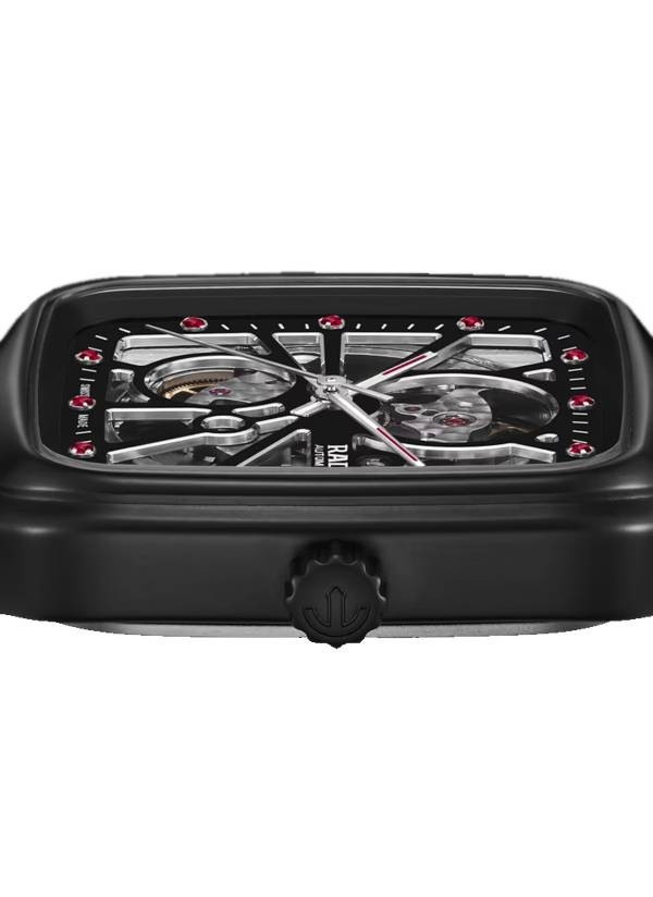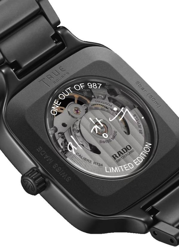 Koreański aktor i gwiazda ekranu Ji Chang-wook jest globalnym ambasadorem marki Rado i współprojektantem własnej limitowanej edycji zegarka True Square Open Heart. Elegancka czarna, matowa koperta monobloc z ceramiki high-tech otula płaskie szkło szafirowe z powłoką antyrefleksyjną po obu stronach, doświetlające szeroko otwartą tarczę i jej znaczniki godzinowe – 12 jasnych rubinów z pasującymi czerwonymi akcentami Super-LumiNova® na wskazówkach. Czarna tarcza z widocznym mechanizmem ma fazowania z kolorze niklu i delikatne, pionowo szczotkowane wykończenie. Ozdobiona jest szlifem kolistym i wzorem Côtes de Genève, a całość otaczają nadrukowane wskazówki minutowe. Piaskowany tytanowy dekiel z przydymionym szkłem szafirowym jest ozdobiony słowami LIMITED EDITION, ONE OUT OF 987 oraz podpisem Ji Chang-wooka w bieli. Ten olśniewający nowy model napędzany jest automatycznym mechanizmem Rado kaliber R734 z 25 kamieniami szlachetnymi i trzema wskazówkami, który spełnia wszystkie standardowe wymagania testowe i jest wyposażony w sprężynę włosową Nivachron™ oraz niezwykłą, 80-godzinną rezerwę chodu. Wodoszczelność do 5 barów (50 m).
