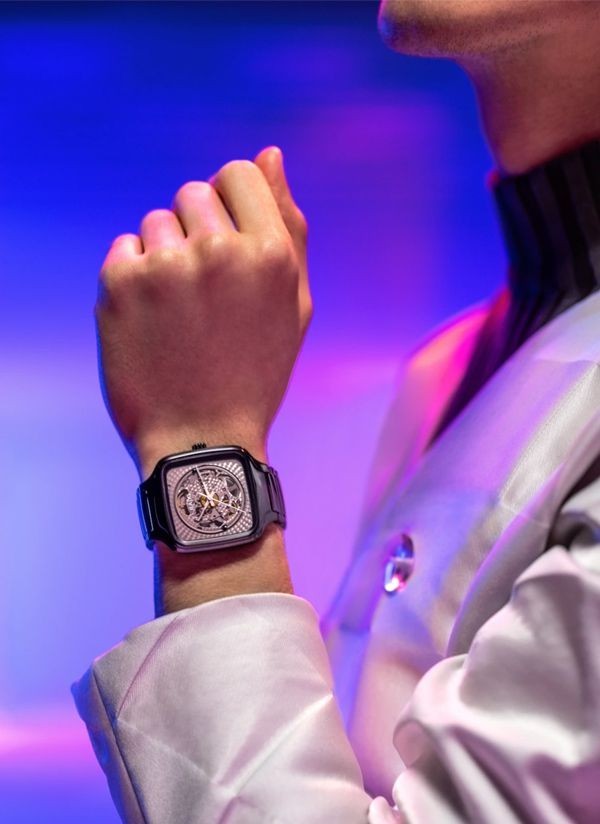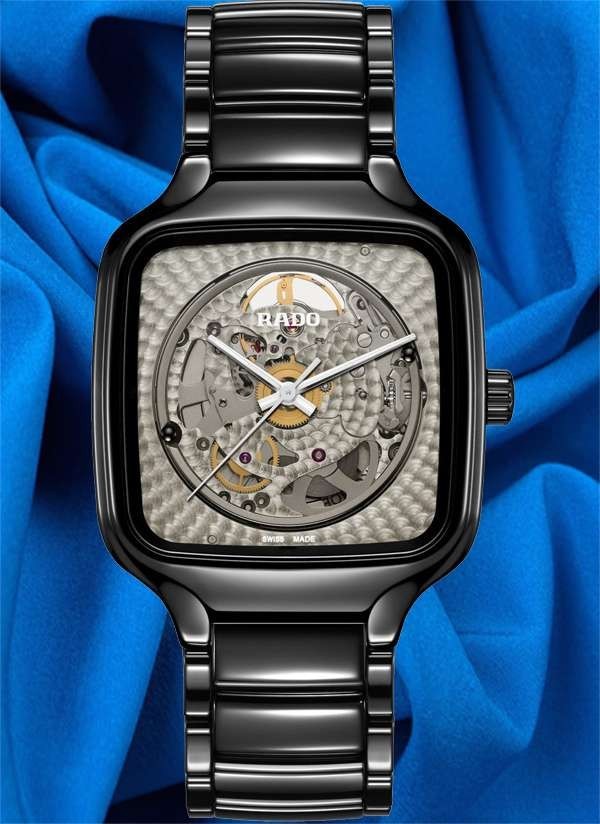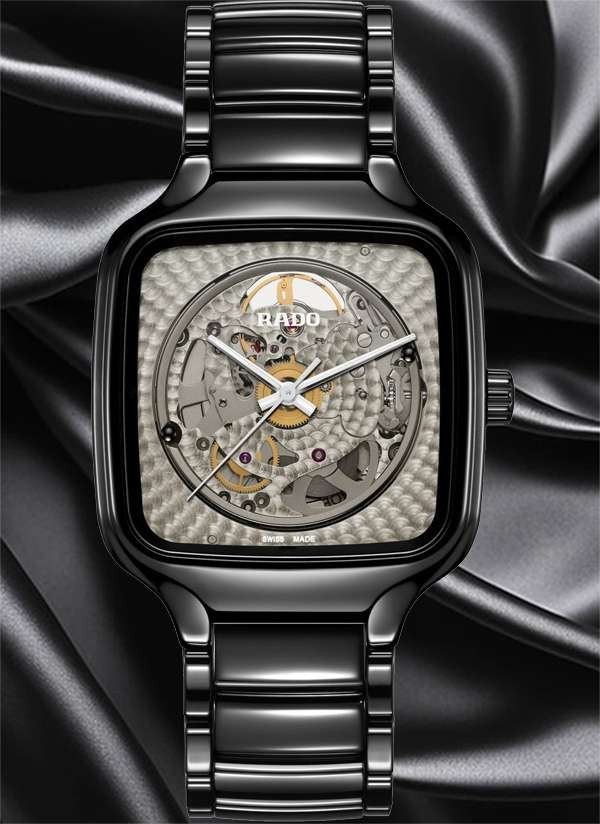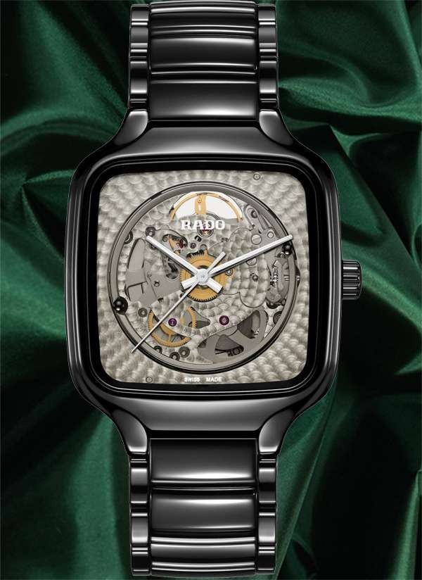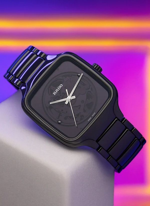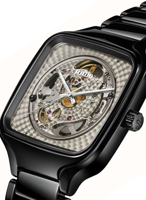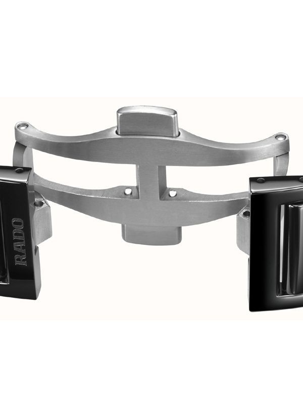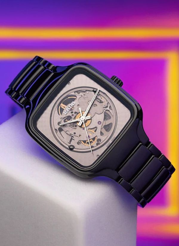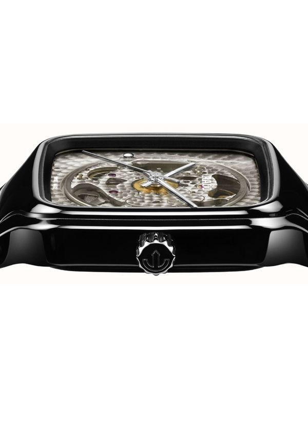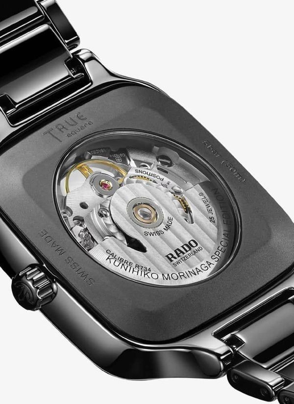Doświadcz idealnego połączenia rzemiosła i precyzji ucieleśnionego w zegarku Rado True Square x Kunihiko Morinaga, stworzonym we współpracy z wizjonerskim japońskim projektantem mody, Kunihiko Morinaga. Cechą charakterystyczną tego niezwykłego zegarka – oprócz antymagnetycznej sprężyny włosowej Nivachron™ i 80-godzinnej rezerwy chodu – jest urzekający automatyczny kaliber Rado R734. Podobnie jak uchwyt mechanizmu, posiada on okrągłe zdobienia. Wykonana z czarnej polerowanej ceramiki high-tech koperta o szerokości 38 mm i koronka emanują eleganckim i nowoczesnym urokiem. Płaskie szkło szafirowe z powłoką antyrefleksyjną po obu stronach zapewnia wyjątkową przejrzystość. Przezroczysta tarcza z efektem fotochromowym sprawia, że mechanizm jest widoczny lub niewidoczny. Pod wpływem światła słonecznego (promieni UV) tarcza True Square ciemnieje. Jednak w miarę jak światło słoneczne zmniejsza się, odcień tarczy zmienia się w szary i ostatecznie staje się przezroczysty. Wskazówki w kolorze srebra podkreślone białą licówką i białą powłoką Super-LumiNova® zapewniają doskonałą widoczność, dodając zegarkowi subtelnej elegancji. Całości dopełnia polerowana, czarna bransoleta z ceramiki high-tech, oferująca zarówno wygodę, jak i trwałość.