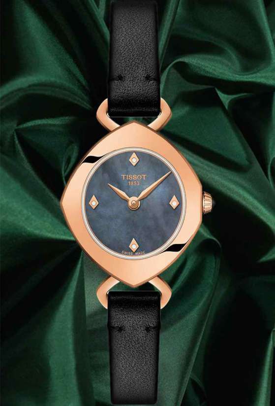 Elementem charakterystycznym zegarka jest koperta ze stali szlachetnej, pokryta warstwą PVD w odcieniu złota. Niewielki damski zegarek o pozornie klasycznym stylu został ciekawie urozmaicony. Jego tarcza pokryta thaitańską masą perłową i zdobiona czterema małymi brylantami o łącznej masie 0,0052 ct, sprawia, że czasomierz nabiera blasku, elegancji i luksusowego wyrazu. Ciemna barwa tarczy kontrastuje z kolorem złota na kopercie, wskazówkach i indeksach.